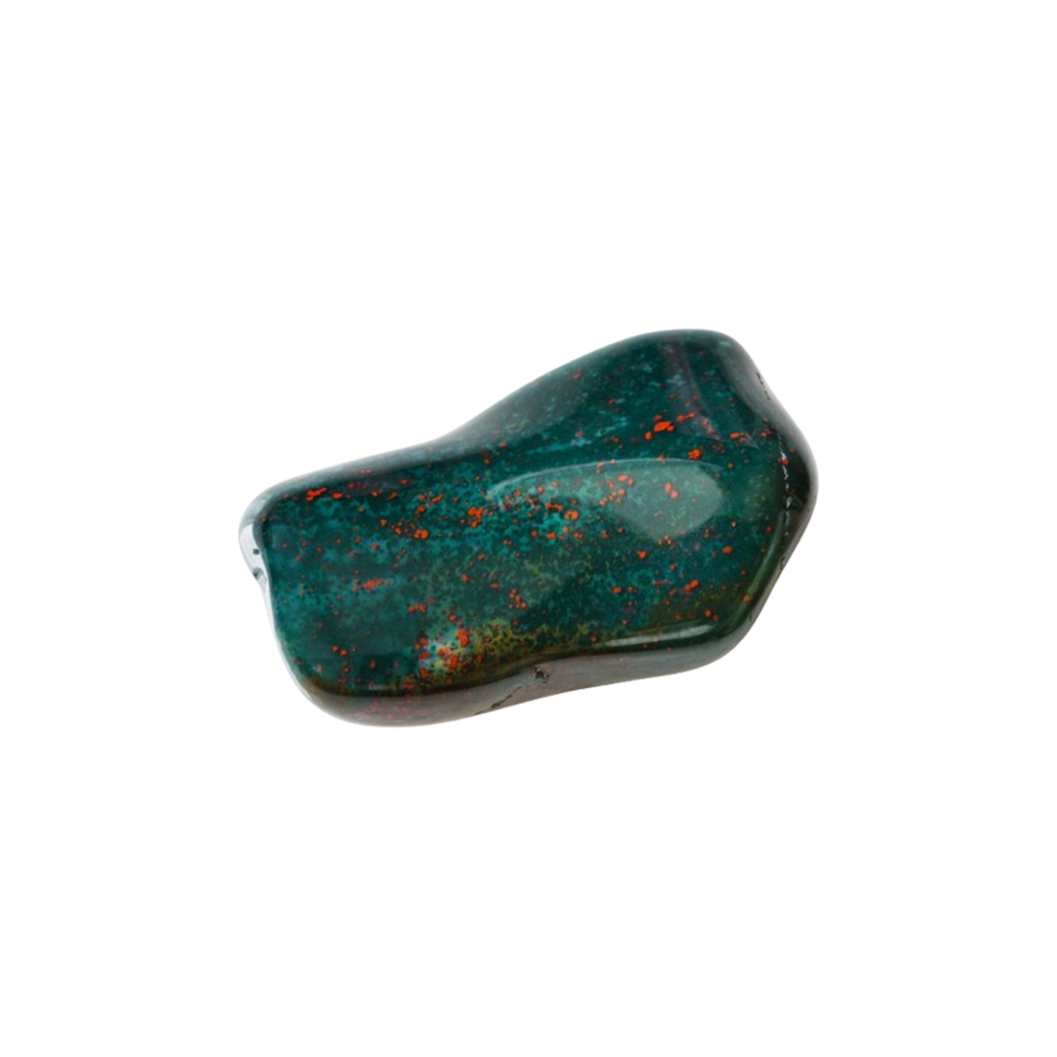 Also known as Heliotrope, Bloodstone is a deep green variety of chalcedony marked with red flecks of iron oxide, giving it a unique, blood-like appearance that symbolizes vitality and healing.
